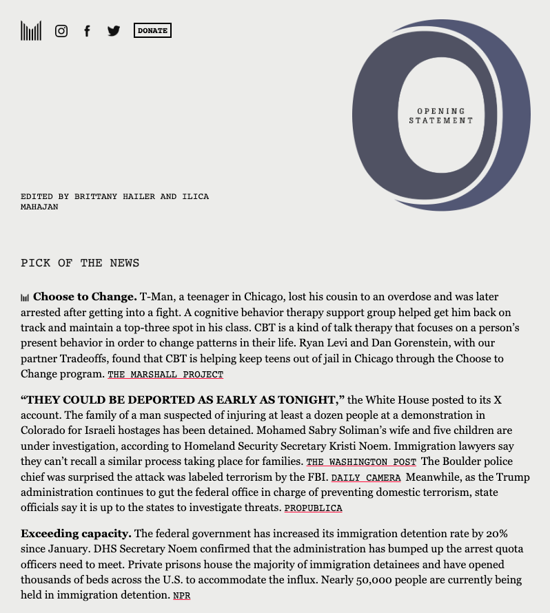Here's another example. This is the daily morning newsletter sent by the Marshall Project, an advocacy group that leans heavily into content and original journalism. I realize most advocacy groups aren't going to be so content driven (and maybe they shouldn't). But realize that people are here for a content-rich newsletter if you have the content to deliver in it.